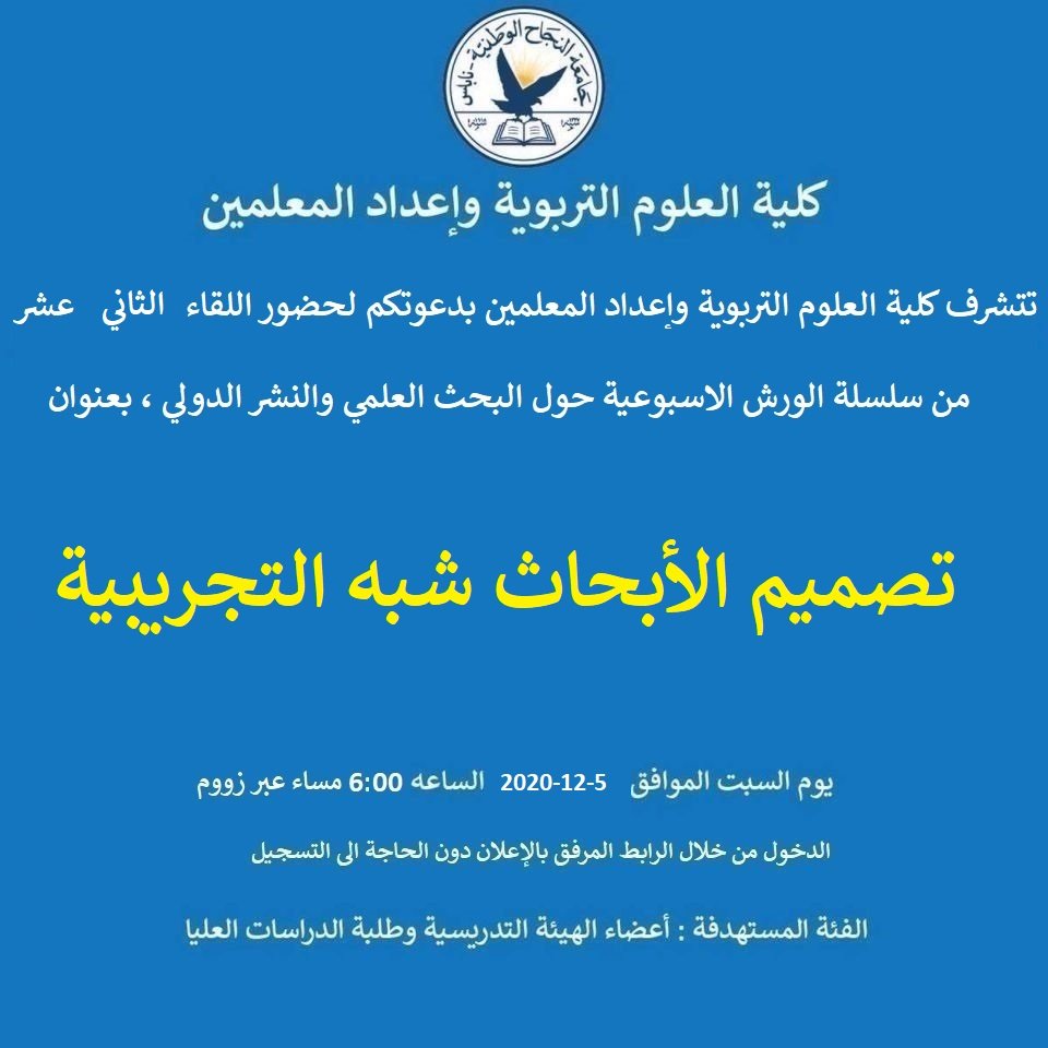 سلسلة الورش الأسبوعية حول البحث العلمي والنشر الدولي" تصميم الأبحاث شبه التجريبية"